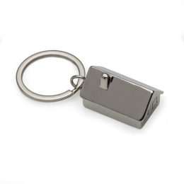 Chaveiro de Metal Casa em 3D, possui janelas em relevo e chaminé. Parte inferior com chapa inox ideal para personalização.