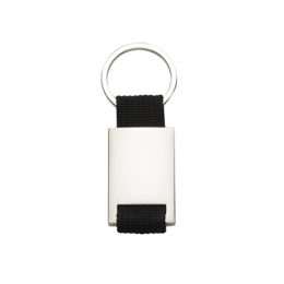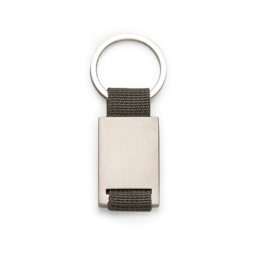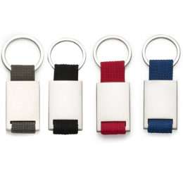 Chaveiro de metal com detalhe colorido em nylon. Metal liso e fosco de ambos lados.