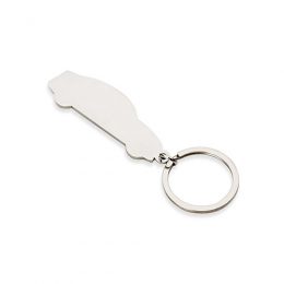 Descrição: Chaveiro metal formato carro com detalhes preto em relevo e verso espelhado.
