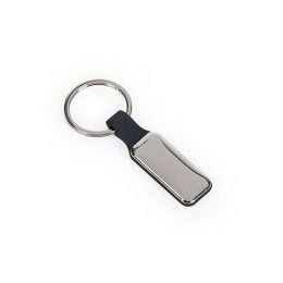 Descrição: Chaveiro de metal retangular brilhante com detalhe emborrachado preto, possui a frente e verso liso espelhado.