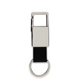 Descrição: Chaveiro de metal com mosquetão. Chaveiro metálico com chapa central de alumínio na cor preta e verso liso brilhante, possui alça de nylon. Mosquetão sem trava.
