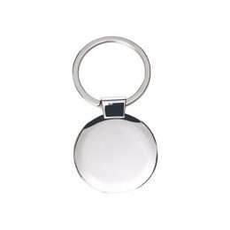 Descrição: Chaveiro redondo de metal brilhante, chapa central de pintura escovada.