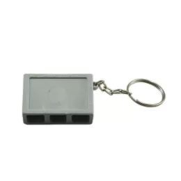 Chaveiro plástico formato bloco de concreto, frente com área retangular lisa perfeita para aplicar resina e verso detalhado em relevo.