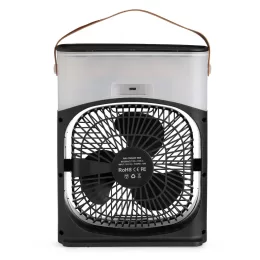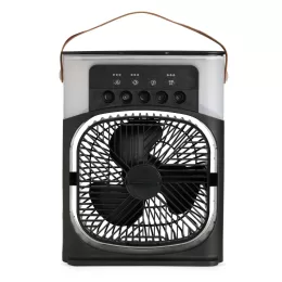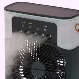 Descrição: Climatizador de mesa com reservatório de água com capacidade de 600ml. Possui 3 intensidades de ventilação, 3 ajustes de saída de ar do umidificador, ajuste vertical manualmente da direção do fluxo de ar, temporizador (1, 3, 5 horas) 7 luzes de led multicoloridas. Na parte central do climatizador contém espaço com trava para colocar filtro e adicionar gotas de óleo essencial. Possui alça de couro e cabo USB TYPE C. Obs. Certifique-se de que a corrente de saída da fonte de alimentação é maior ou igual a 2A e 10W, fonte de alimentação inferior levará o funcionamento de energia insuficiente.