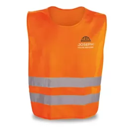 Colete de alta visibilidade em 100% poliéster com certificado pela norma EN 17353. Colete refletivo com 2 bandas refletoras horizontais e elásticos laterais. Este produto não é adequado para uso profissional. 540 x 620 mm