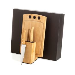 O Conj. Cozinha C/ Cepo Em Bambu / Inox 6 Pçs SMKT-90164 é uma ótima opção de brinde promocional e uma ferramenta perfeita para divulgar a sua marca. Confira aqui!!!