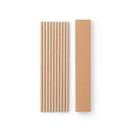 Conjunto de 10 canudos de uso único em papel kraft. Fornecidos em caixa de papel kraft. Canudo: ø6 x 196 mm | Caixa: 33 x 200 x 14 mm