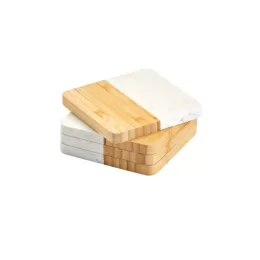 Conjunto de 4 Porta Copos em Mármore e Bambu SP94338