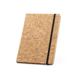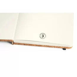 Conjunto de bloco de notas A5 e esferográfica em cortiça. Bloco com 96 folhas com linhas pautadas cor marfim, em papel proveniente de gestão florestal sustentável. Esferográfica de escrita a azul. Fornecido em caixa presente de papel craft. 140 x 210 mm