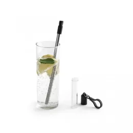 Conjunto de canudo. Aço inox. 1 canudo telescópico, 1 escova de limpeza e estojo com mosquestão. Food grade. Canudo: ø9 x 218 mm | Estojo: ø10 x 105 mm