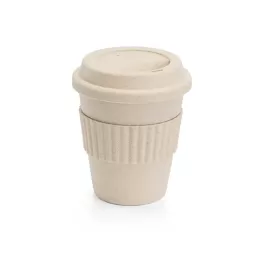 Copo de viagem. Fibra de bambu e PP. Capacidade: 380 ml. Food grade. 95 x 95 x 114 mm