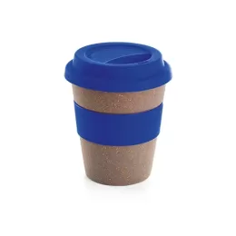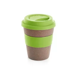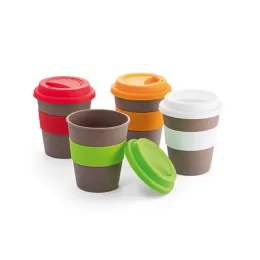 Copo de viagem. Fibra de bambu e PP. Com tampa e banda em silicone. Capacidade: 390 ml. Food grade. Ø95 x 113 mm