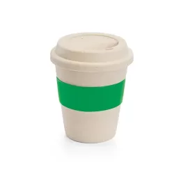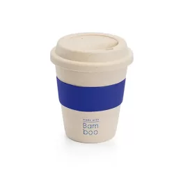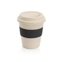 Copo de viagem. Fibra de bambu e PP. Com banda em silicone. Capacidade: 380 ml. Food grade. Ø95 x 114 mm