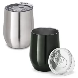 Copo de viagem. Aço inox. Com corpo duplo. Capacidade: 400 ml. Food grade. Fornecida em caixa. 88 mm x 112 mm