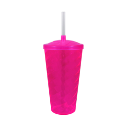 Capacidade para 600ml. Design moderno e acabamento impecável, o Copo Twist com Tampa e Canudo é feito em Plástico Premium (PS), atóxico, com parede de 2mm de espessura que garante um produto robusto de alta qualidade, transparência impecável e cores vibrantes.