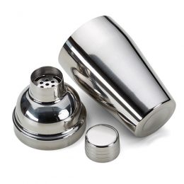 Descrição: Coqueteleira de aço inox 550ml. Possui tampa de encaixe com peneira e tampa protetora para o bico.