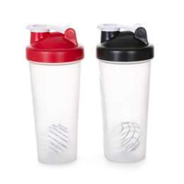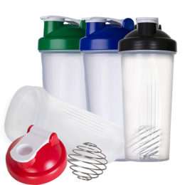 Coqueteleira Shake 600ml plástica. Possui medidas em ml e oz, detalhes em relevo nas laterais e mola para misturar. Tampa de rosca e trava na própria tampa, basta levantar para beber.