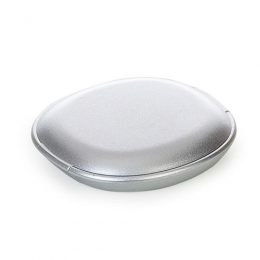 Descrição: Espelho oval plástico duplo sem aumento. Área central superior plana e verso com detalhe circular.