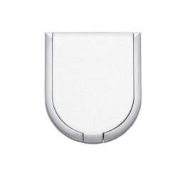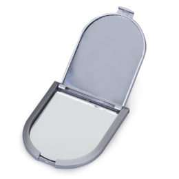 Espelho duplo plástico em formato escudo, sem aumento.