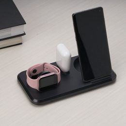 Descrição: Estação de carregamento 3 em 1 para celular, iwatch e fones com entrada Lightning. Com sistema de carga por indução rápida, a estação permite o carregamento sem fio de celulares e iwatchs habilitados com estas tecnologias, além destes suportes, a estação conta ainda com um carregador para fones através do conector Lightning. Sua base contém tapetes de silicone antiderrapantes. Acompanha cabo USB tipo-C.