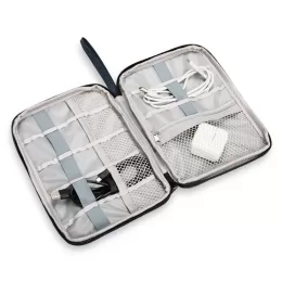 Descrição: Estojo confeccionado em poliéster resistente à água. Conta com bolso interno em tela de nylon e fechamento em zíper e divisórias em diferentes tamanhos em elástico. Possui alça de mão para transporte.