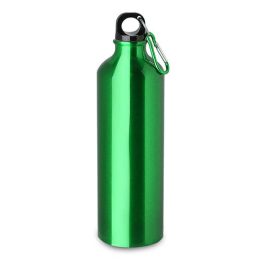 Garrafa em alumínio, tampa de plástico com mosquetão colorido. Capacidade de 750ml, com pintura metálica.