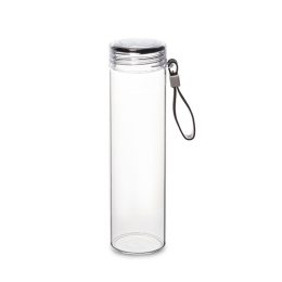 Garrafa em vidro borossilicato com alça em silicone e tampa rosqueável, com capacidade de até 500ml.