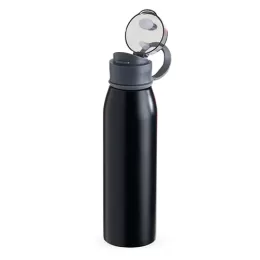 Descrição: Garrafa 650ml em inox. Tampa plástica rosqueável com proteção para o bocal e alça emborrachada para transporte