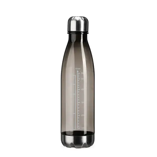 Descrição: Garrafa plástica translúcida com capacidade máxima de 750ml e marcação de volume até 700ml. Conta ainda com base e tampa rosqueável em alumínio.
