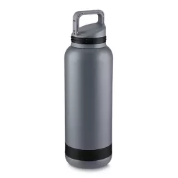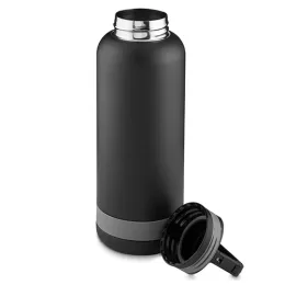Garrafa térmica em aço inox com parede dupla isolada a vácuo, com capacidade de até 750ml. Tampa rosqueável com anel de silicone para vedação. Alça plástica tipo mosquetão.