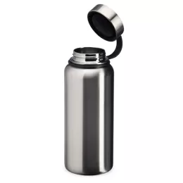 Descrição: Garrafa térmica de parede dupla em inox, capacidade de 950ml. Tampa rosqueável com alça para transporte.