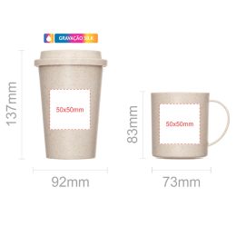 Uma gravação em Silkscreen no copo e na caneca.