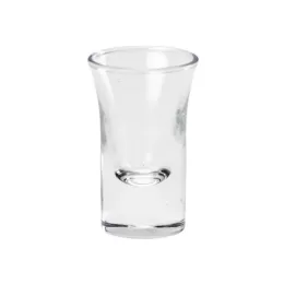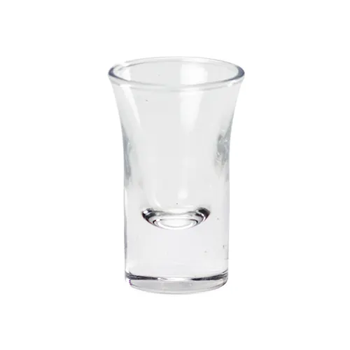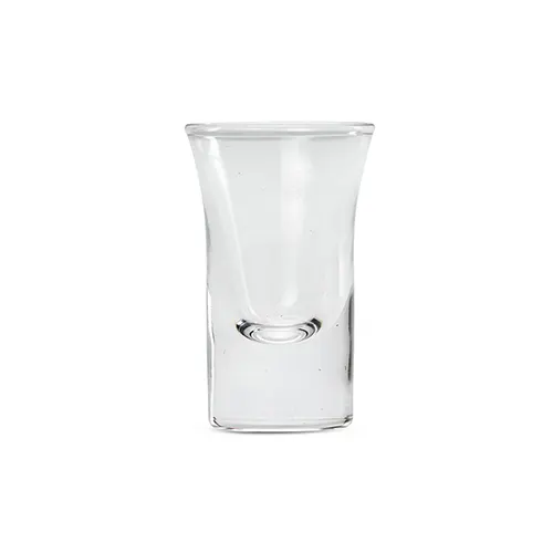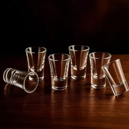 Kit com seis copos de vidro com capacidade máxima de 30ml cada.