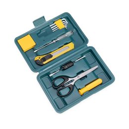 Descrição: Kit ferramenta 11 peças em estojo de polietileno com trava de segurança. Acompanha: conjunto de 5 chaves Allen, chave teste, trena de 1 metro, estilete, chave dupla (Phillips e Fenda), tesoura e cabo plástico para encaixe da chave dupla.