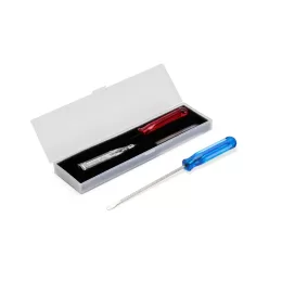 Descrição: Kit ferramentas com três chaves de cabo plástico, haste e ponta metálicas. Contém chave de fenda, chave Phillips e chave de teste. Acompanha estojo plástico com espuma removível para acomodar as ferramentas.