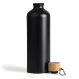 DESCRIÇÃO: Conta com garrafa, caderno para anotações wire-o preto com capa dura e caneta confeccionada em bambu ecológico.