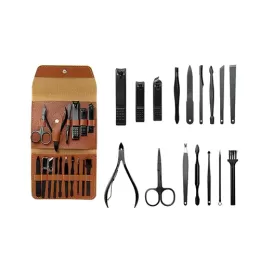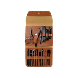 Descrição: Kit manicure 16 peças em estojo de couro sintético estilo envelope, contém: tesoura, alicate de cutícula, pinça, 3 cortadores de unha, lixa, espátula dupla para limpeza das unhas, empurrador de cutícula, 2 bisturis, raspador, removedor de cutícula, palito de unha, espátula para ouvido e pincel.