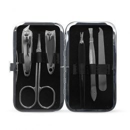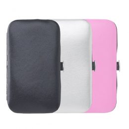 Descrição: Kit manicure 6 peças em estojo de couro sintético. Possui: lixa, pinça, empurrador de cutícula, cortador de cutícula, tesoura e cortador de unha. Parte interna revestido de veludo com suporte de couro para fixar as peças. Para abrir o estojo basta apertar o botão central. OBS.: APENAS NA COR PRETA O VELUDO INTERNO É PRETO!