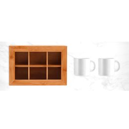 Kit para Chá com caixa em Bambu e duas canecas em Porcelana (270ml cada). Estão perfeitamente acomodados em uma caixa para presentear. Utilizamos o Bambu, por ser uma matéria prima ecológica, autossustentável e com alta resistência. Além de versátil, o Bambu é 30% mais leve que as madeiras de lei.