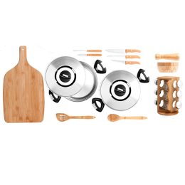 Kit Para Cozinha Em Bambu / Inox 18Pçs SMKT-20022