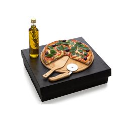 O Kit Para Pizza com Garrafa Bambu / Inox / Vidro 4 Pçs SMKT-90169 é uma ótima opção de brinde promocional e uma ferramenta perfeita para divulgar a sua marca. Confira aqui!!!