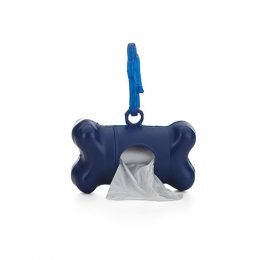 Descrição: Kit saquinho coletor em formato de osso. Produzido em material plástico, o kit possui abertura lateral para encaixe do rolo e parte frontal vazada com dente plástico, permitindo puxar e destacar os saquinhos. Acompanha mosquetão e rolo de saquinhos.