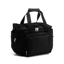 Descrição: Conta com bolsa térmica em polyester e revestida em PEVA branco com alças de mão e ombro, um bolso frontal, dois bolsos laterais com zíper e elástico superior trançado, quatro copos em vidro e quatro porta copos. Acomodados em uma caixa para presentear.