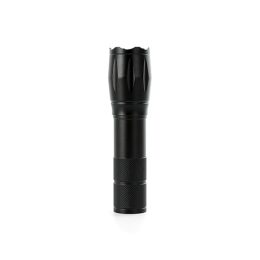 Descrição: Lanterna led recarregável com zoom de regulagem e três estágios de iluminação, material metálico. Acompanha cordão de nylon e cabo USB-V8.