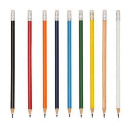 Lápis resinado colorido com borracha e grafite preto, guarnição prateada. Obs.: Apenas na cor natural o lápis é de madeira de reflorestamento.