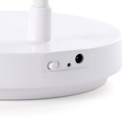 Descrição: Luminária articulável em led recarregável e funcionamento touch, material plástico. Contém três estágios de iluminação com regulagem de intensidade touch: luz fria (branca), luz quente (amarela) e luz mista (branca e amarela). Base com botão para ligar e desligar. Acompanha uma bateria de lítio e cabo USB para carregamento.
