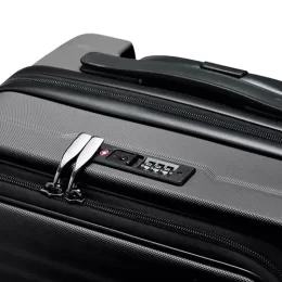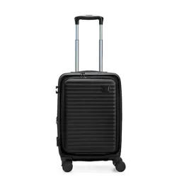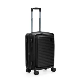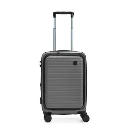 Descrição: Mala de bordo 32 litros, resistente e funcional! Produzida em plástico ABS, conta com cadeado numérico TSA embutido para mais segurança. Seu design inteligente traz abertura frontal com bolso para notebook de até 15.6, além de divisórias internas com zíperes e cinta compressora para roupas. Precisa de mais espaço? O zíper externo expansível se encarrega de ampliar a capacidade da mala. Para facilitar o transporte, possui puxador retrátil de 3 estágios, duas alças de mão, apoios e ganchos laterais e rodinhas 360º, proporcionando mobilidade total. Acompanha plaquinha metálica grafite personalizável.