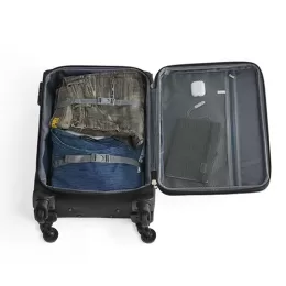 Mala de viagem 48 litros, confeccionada em poliéster de alta qualidade, com cadeado numérico TSA. Possui etiquetas de identificação embutidas na mala, sendo uma integrada ao cadeado e outra na parte de trás da mala, acoplada por estojo em couro sintético. Três compartimentos, bolso telado, cinta compressora para roupas, alça de mão em poliéster, puxador retrátil com regulagem de tamanho, zíper expansível e quatro rodinhas 360º.