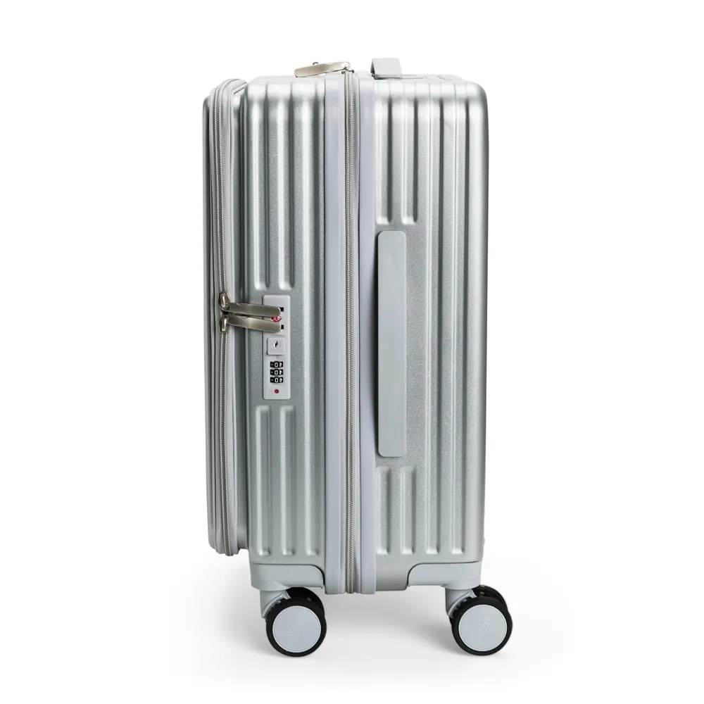 Descrição: Mala de viagem feita em ABS com capacidade de até 33 litros quando o zíper externo de expansão é aberto. Possui abertura frontal com bolsos de zíperes, uma divisória para notebooks de até 15,6 polegadas e cinta compressora para roupas. Conta ainda com cadeado TSA embutido na parte superior, quatro rodinhas giratórias 360°, duas alças de mão, além de apoios e ganchos laterais. Acompanha placa metálica personalizável.
