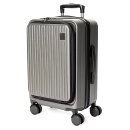 Mala de viagem feita em ABS com capacidade de até 33 litros quando o zíper externo de expansão é aberto. Possui abertura frontal com bolsos de zíperes, uma divisória para notebooks de até 15,6 polegadas e cinta compressora para roupas. Conta ainda com cadeado TSA embutido na parte superior, quatro rodinhas giratórias 360°, duas alças de mão, além de apoios e ganchos laterais. Acompanha placa metálica personalizável.